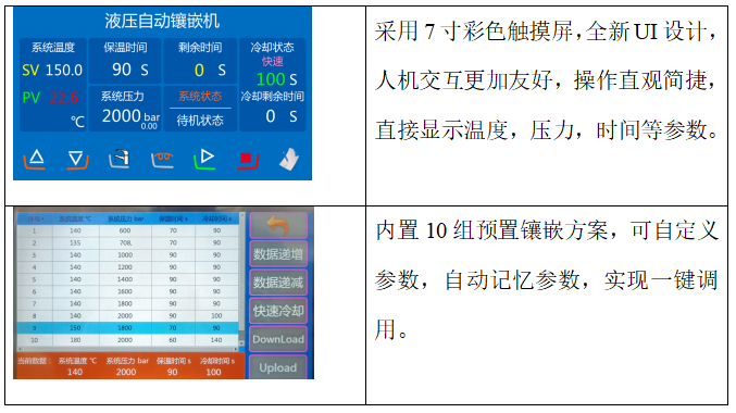 ZXQ-2Y型自動鑲嵌機是一款先進的液壓水冷式自動試樣鑲嵌設備,獨特冷熱分離設計,將樣品鑲嵌時間縮短到6分鐘以內,大大提高了工作效率,鑲嵌過程由全自動程序進行控制,實現了加熱、加壓、保壓、冷卻、卸壓等鑲嵌過程的一鍵式操作,無需操作人員值守,自動完成試樣鑲嵌。該機采用液壓泵加壓,壓力更大,壓力范圍可調,鑲嵌樣品表面光亮如鏡,制樣成功率高。高清觸摸屏顯示及控制,實時顯示壓力和溫度,鑲嵌方案可保存,調取方便;配備強制水冷卻系統,制樣速度快,采用獨特設計的旋轉鎖上蓋,安全性更高,操作更方便,性能穩定,是試樣鑲嵌的理想設備。